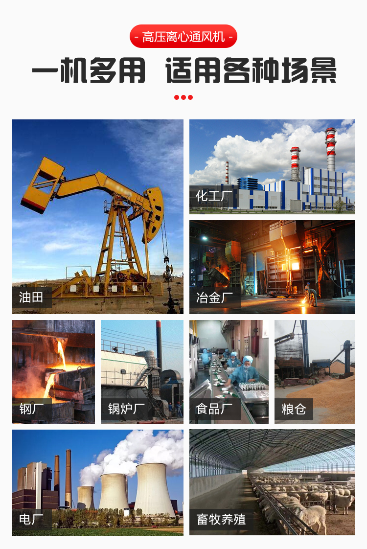 廣泛適用性:這類風機可用于多種場景,包括工業生產、建筑通風、物料運輸等。它們能夠輸送空氣以及無腐蝕性、不自燃、不含粘性物質的氣體,適用范圍非常廣泛。