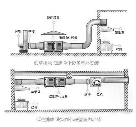 排煙管的設計和安裝不科學,常常造成廚房排煙系統不順暢,直接影響到油煙凈化器的使用。