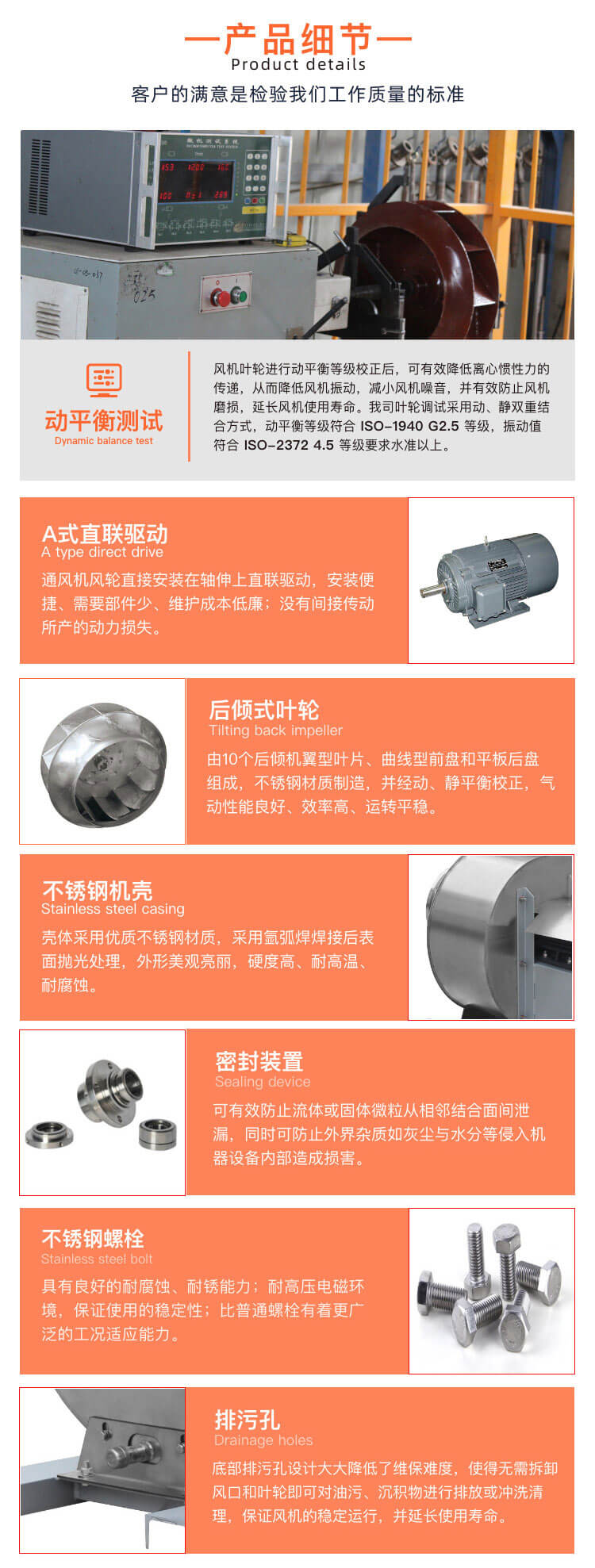 風機主要由電機、蝸殼、葉輪、進風口、電機支撐結(jié)構(gòu)等組成。從電動機 端正視,葉輪順時針旋轉(zhuǎn)稱為右旋風機,以“ 右”表示;葉輪逆時針旋轉(zhuǎn)稱為左 旋風機,以“左”表示。風機的出口位置以機殼的出風口角度表示。