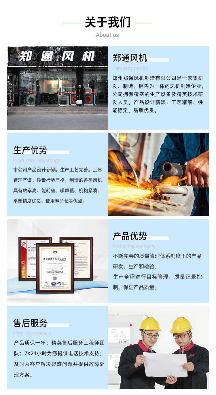 鄭州鄭通風(fēng)機(jī)制造有限公司是一家集研發(fā)、制造、銷售為一體的風(fēng)機(jī)專業(yè)制造企業(yè)。公司擁有精密的生產(chǎn)設(shè)備及專業(yè)的技術(shù)研發(fā)人員,產(chǎn)品設(shè)計(jì)新穎、工藝精細(xì)、性能穩(wěn)定、品質(zhì)優(yōu)良。