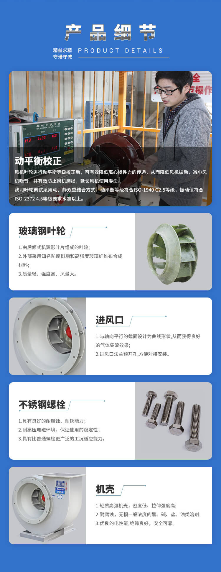 適用于化工、紡織、電鍍、實驗室等場所排送含有一定濃度的酸、堿、鹽等腐蝕性氣體,也可以作為一般工廠的建筑物通風(fēng)換氣用