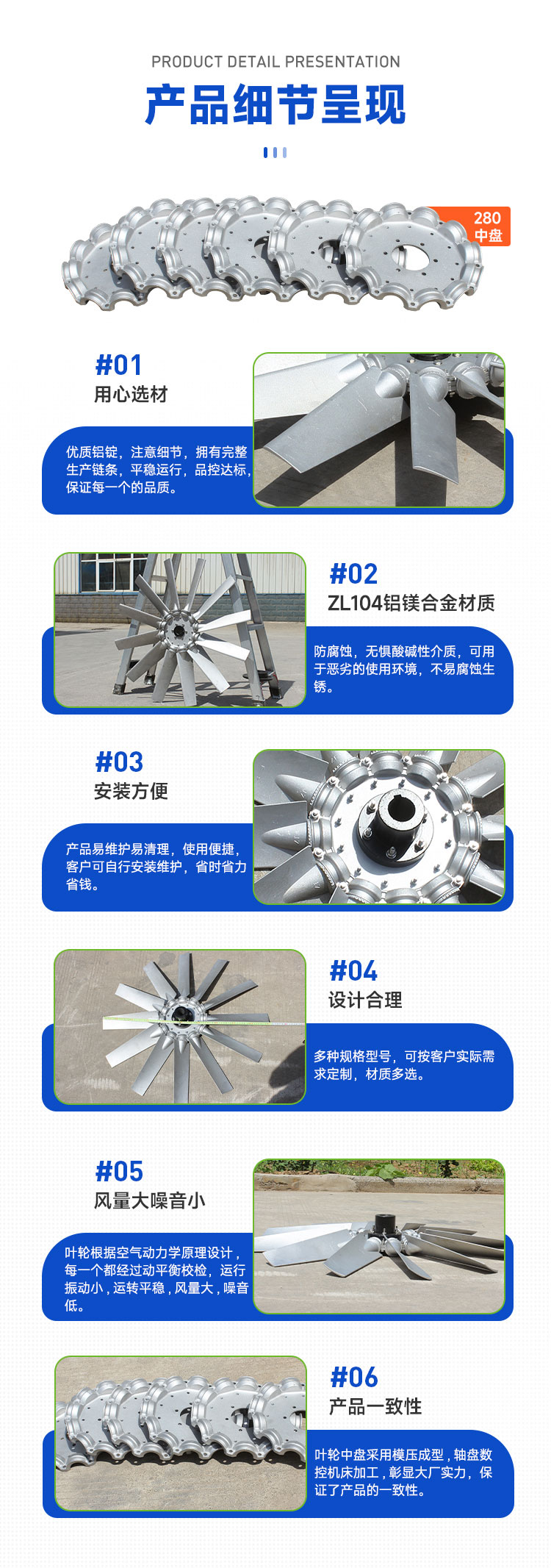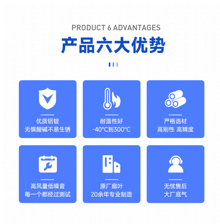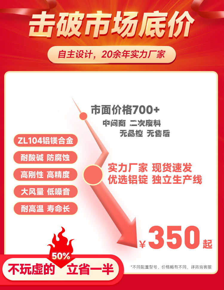葉片采用鋁合金鑄造,減輕風(fēng)葉的重量。