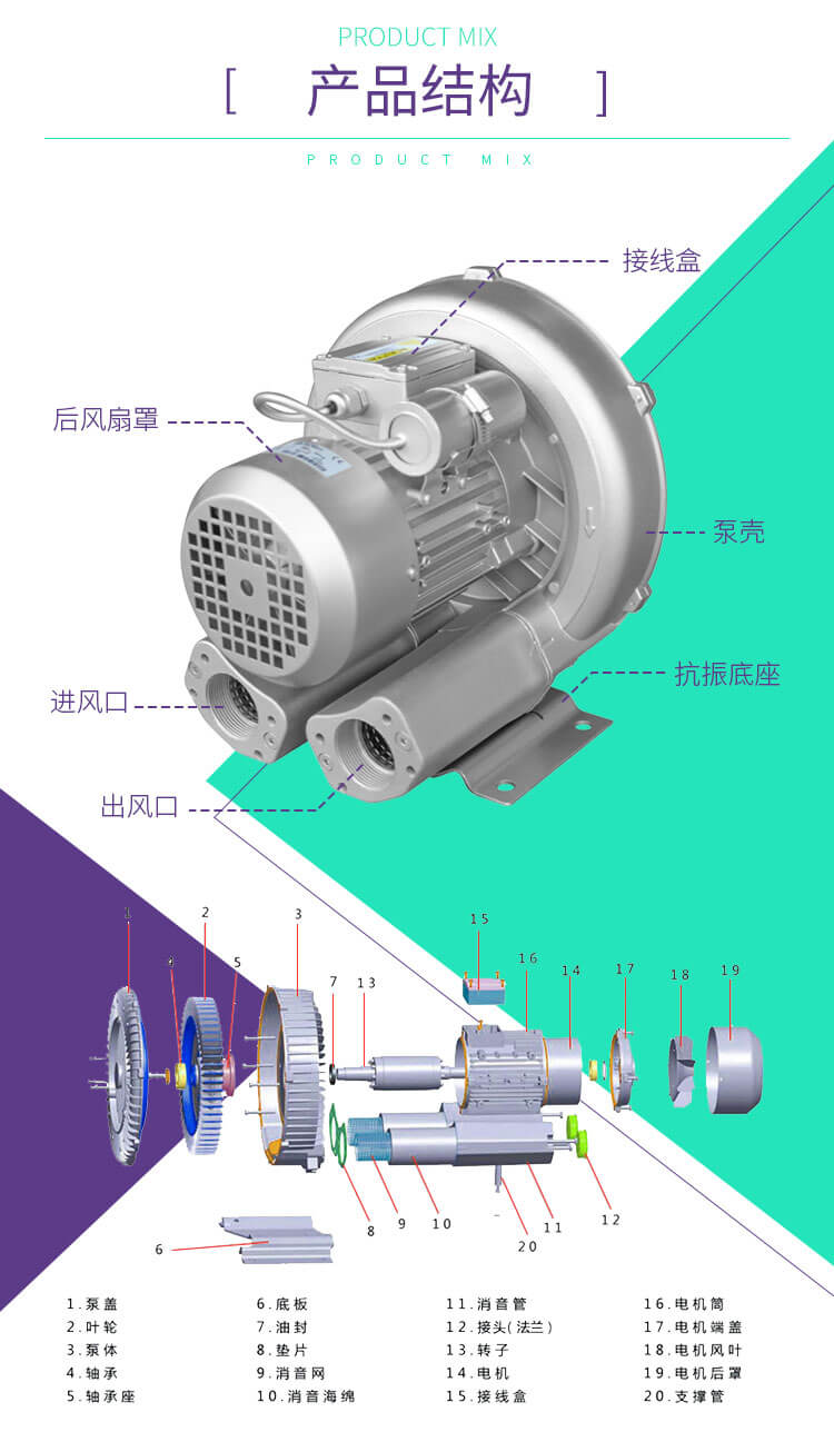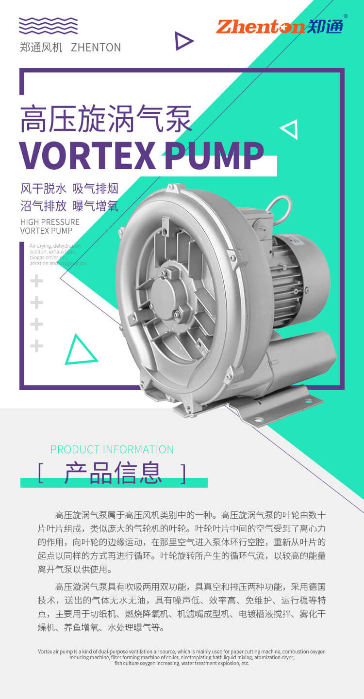 高壓漩渦氣泵具有吹吸兩用雙功能,具真空和排壓兩種功能,采用德國(guó)技術(shù),送出的氣體無(wú)水無(wú)油,具有噪聲低、效率高、免維護(hù)、運(yùn)行穩(wěn)等特點(diǎn),主要用于切紙機(jī)、燃燒降氧機(jī)、機(jī)濾嘴成型機(jī)、電鍍槽液攪拌、霧化干燥機(jī)、養(yǎng)魚(yú)增氧、水處理曝氣等。