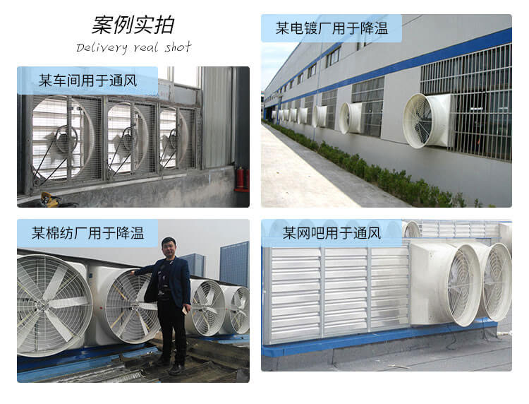適用于高溫或有異味的車間,勞動密集型企業,園藝溫室大棚、畜牧場、倉儲物流等需要通風降溫或一定濕度的領域,如熱處理廠、皮件廠、電鍍廠、印染廠、車間、網吧、棉紡廠、毛紡廠等。