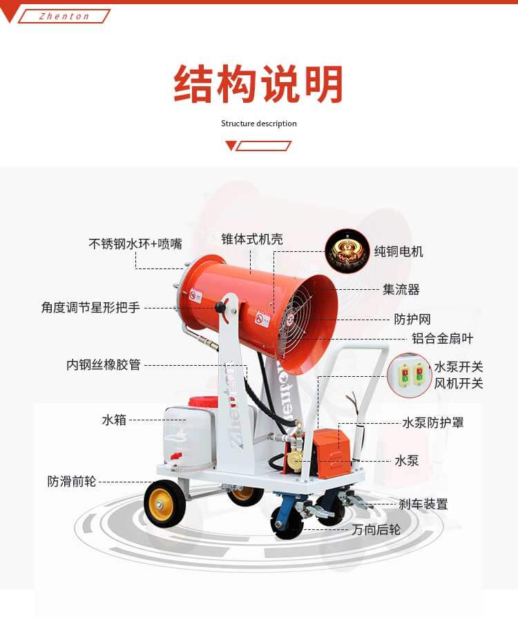 手推移動式噴霧風(fēng)機(jī)降塵速度快、風(fēng)量大、機(jī)結(jié)構(gòu)緊湊、布局合理、移動靈活、構(gòu)造簡單易維護(hù);