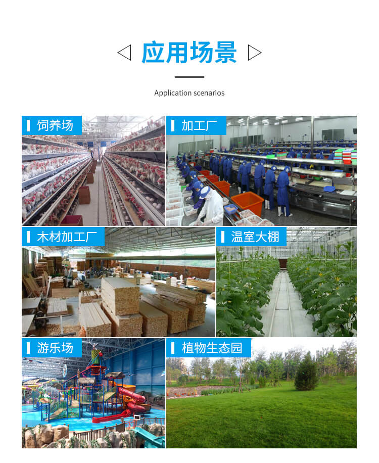 適用于畜牧養殖、花房溫室、廠房崗位降溫、室內降溫等。
