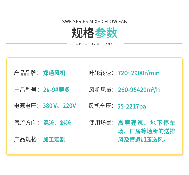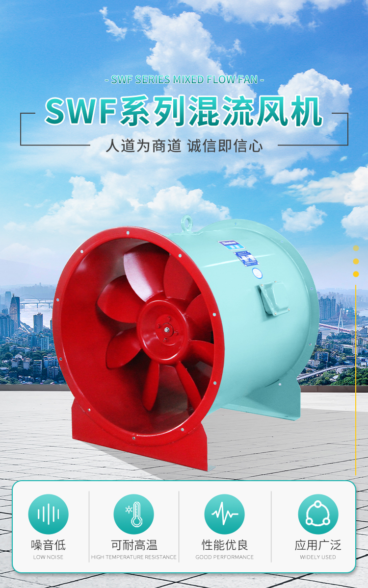 SWF型混流風機多用于冷凍、空調、紡織、船舶、民用建筑等空調工程通風換氣,普通材質風機可輸送空氣和腐蝕性、不自燃的氣體。